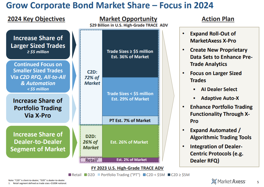 I think this was a new slide in the MKTX deck that shows how they are addressing market share issues and how the sub-markets break down. In theory, this is such a wonderful business. But it seems like they have underinvested in the product and are suffering for it now. We will see if this is enough to turn it around.