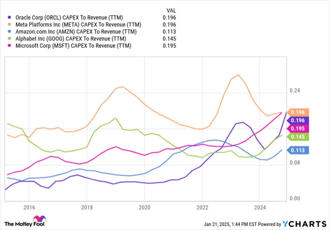 The evolution of the capital allocation is interesting. NetSuite and Cerner only really notable acquisitions in past decade. Both seem reasonable enough to me. Not great, not terrible as far as I can tell. Paid a lot for NetSuite (did not know Larry owned 41% lol) but it pretty much panned out. Did a ton of repurchases at great prices but now stopped to pay down debt from Cerner deal. Will be interesting to see if they return to it afterward given price increase. And then there’s the capex. Now at 19% of revenue, in-line with other hyperscalers, and heading higher. This is a big drag on the valuation if you look at it on a FCF basis. Not sure how to think about that. I don’t really know/understand how the market views and values this capex. I don’t think it cares for the hyperscalers right now. It’s probably a bit less derisked on ORCL but I am not sure. But I feel like if you are giving ORCL 12% growth (my base case that gets me to $140), a lot of that has to be OCI. So you can’t give them the growth and then just ignore the fact that this capex is eating up a huge, huge portion of their FCF. Not sure how long that will persist for. But Bernstein has FY24-27 (Capex-Depr)/(Adj Net Income) of 40-50% ish.