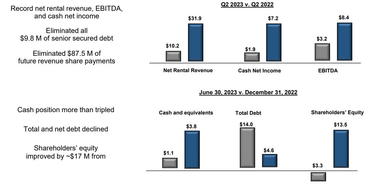 Expecting net rental revenue of $115-120m in 2023, up ~3x from 2022. Expecting EBITDA of $25-30m, and $48-60m next year. TTM cash net income is $9m.