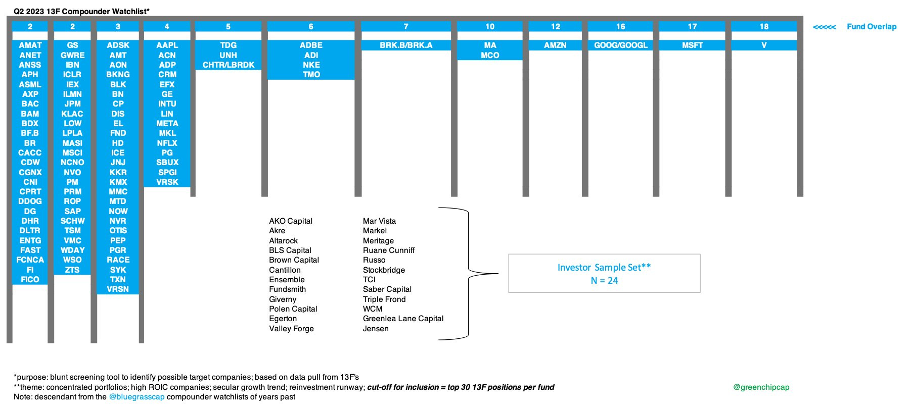 The project that I worked on was basically the automation of a 13F Watchlist like the one pictured below from @greenchipcap.